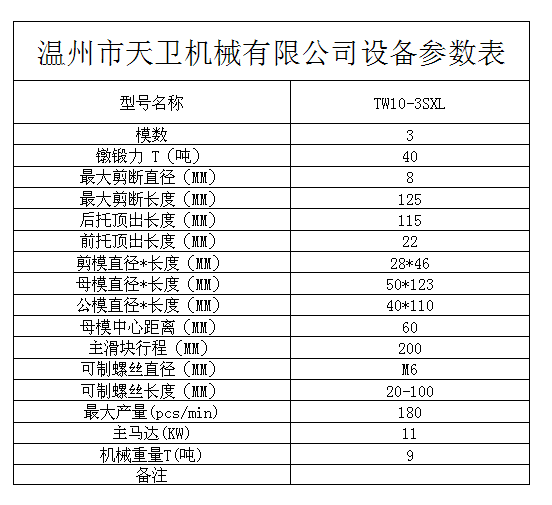 您當(dāng)前的位置:首頁 / 產(chǎn)品中心 / 三模三沖冷鐓機(jī) / └ TW10B(M6)全自動多工位冷鐓機(jī) / TW10B-3SXL全自動多工位冷鐓機(jī)